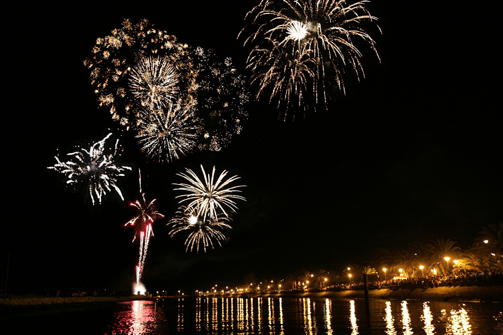 Fogo de artifício na zona ribeirinha da cidade.