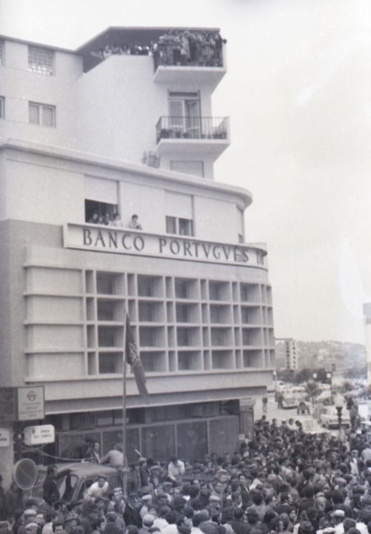Populares na Praça Gil Eanes em 27 de Abril de 1974 - Foto de: Gastão Costa
