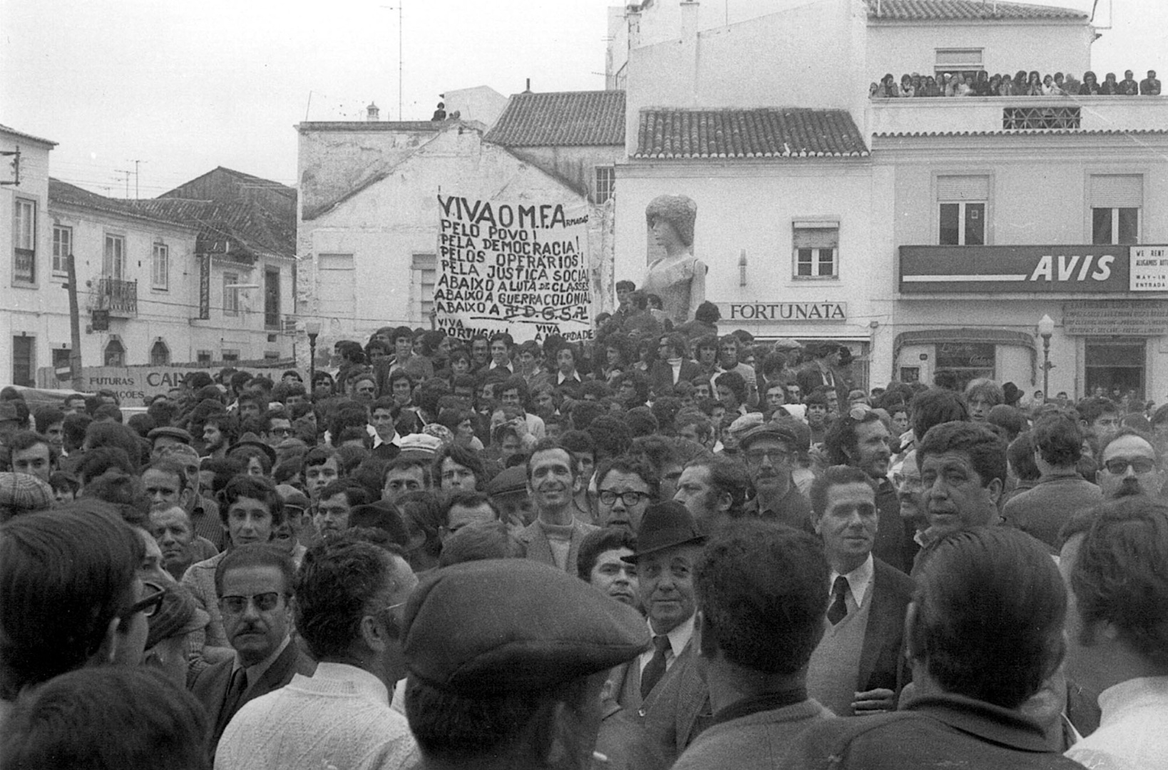 Populares na Praça Gil Eanes em 27 de Abril de 1974 - Foto de: José Alexandre Rosa