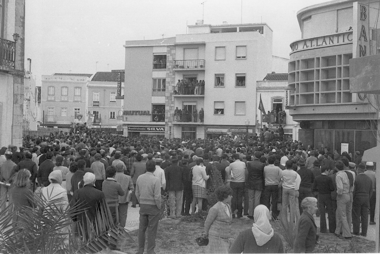 Populares na Praça Gil Eanes em 27 de Abril de 1974 - Foto de: José Alexandre Rosa