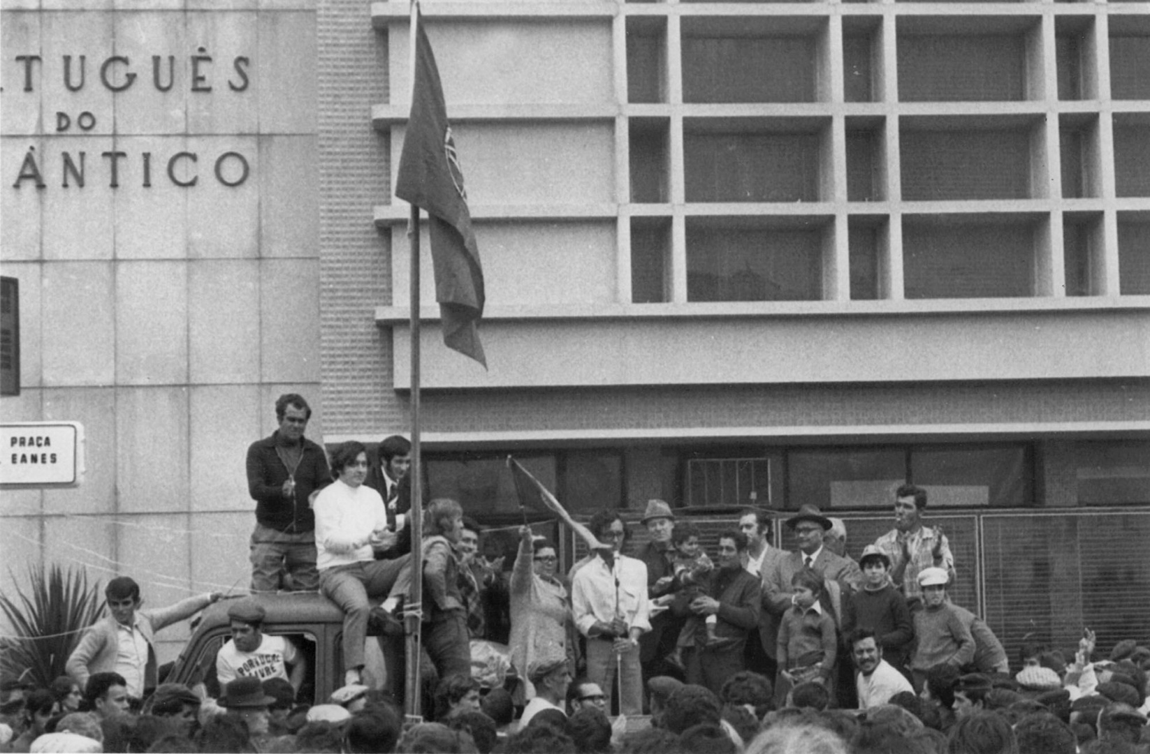 Populares na Praça Gil Eanes em 27 de Abril de 1974 - Foto de: José Alexandre Rosa