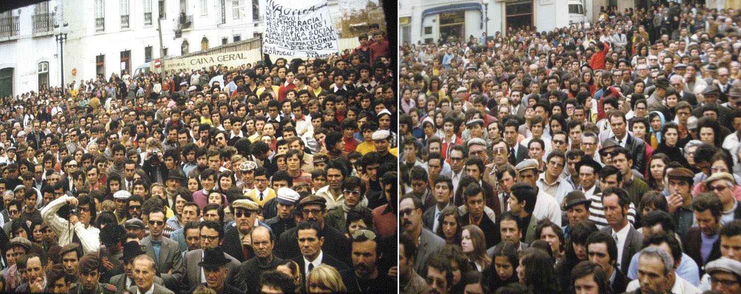 Populares na Praça Gil Eanes em 27 de Abril de 1974 - Foto de: Autor Desconhecido