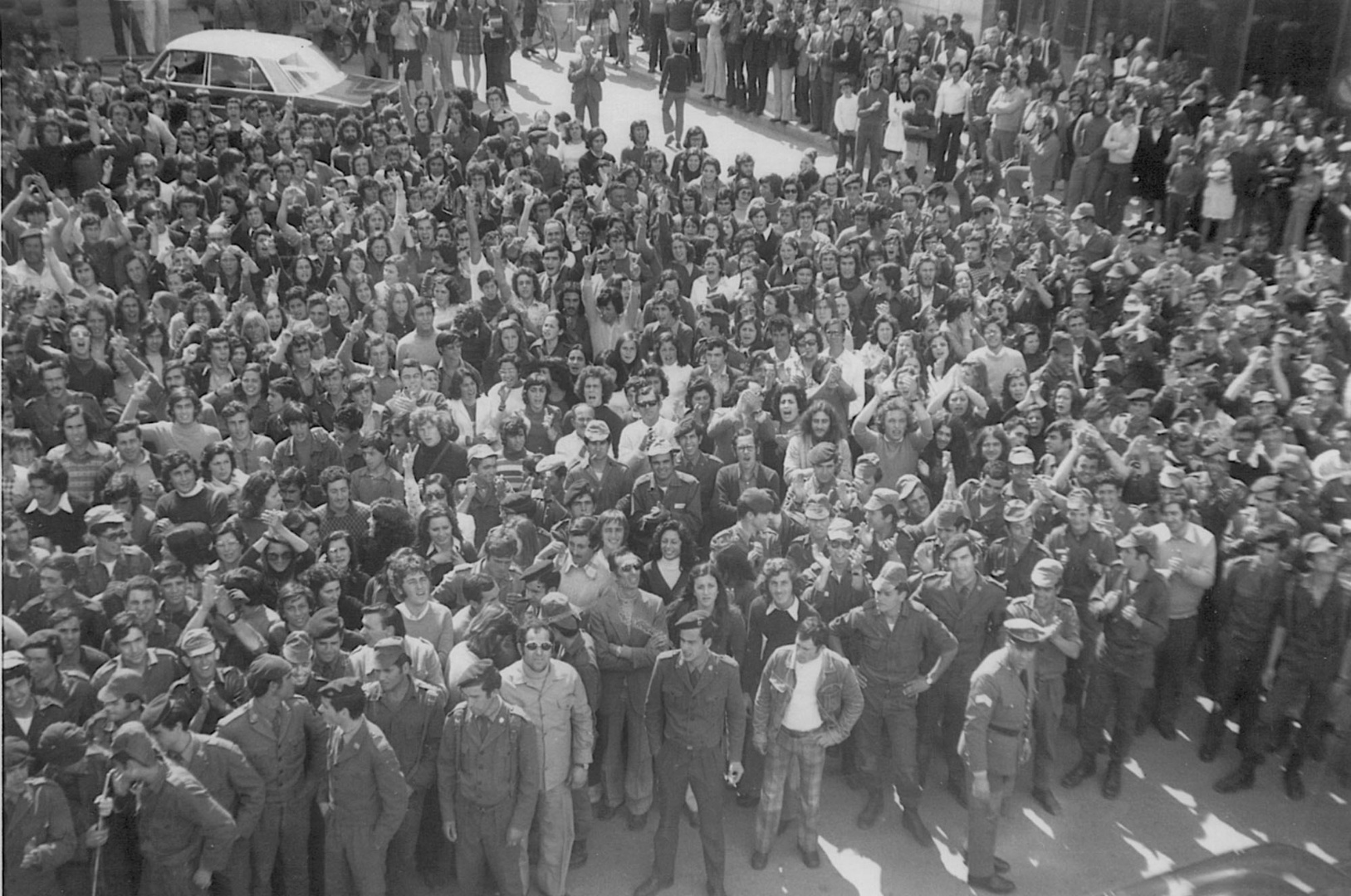 Populares na Praça Gil Eanes em 27 de Abril de 1974 - Foto de: autor desconhecido