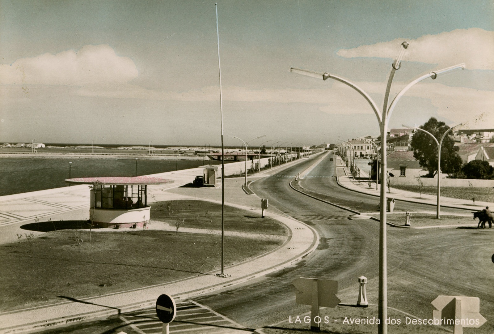 Aspecto da novel Avenida dos Descobrimentos (anos 60). Posto da PVT (Polícia de Viação e Trânsito) ao lado esquerdo. Foto de Casa Borba Martins. Colecção de José Borba Martins