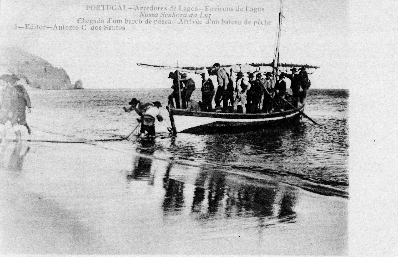Chegada de uma embarcação de pesca (calão das armações?); Praia da Luz c. 1912