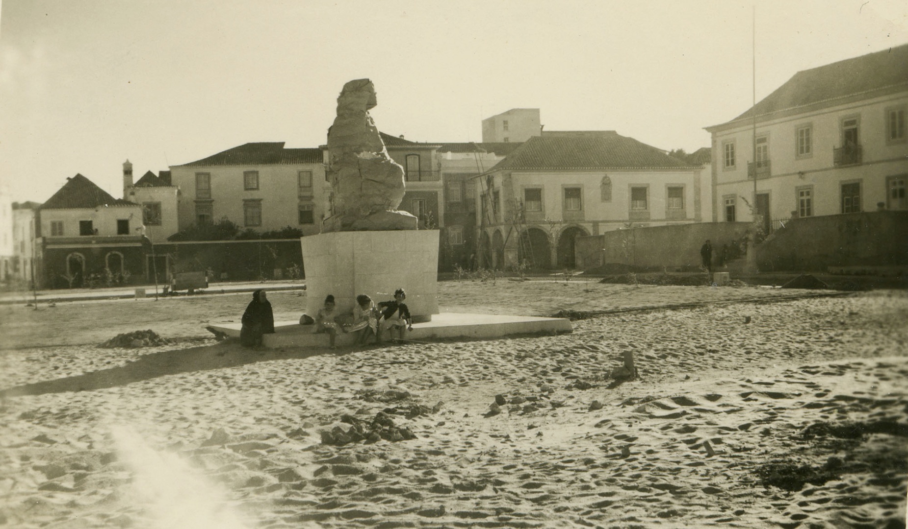 Praça da República com estátua do Infante D. Henrique coberta, em 10 de Julho de 1960. Foto de: autor desconhecido, colecção de Demósthenes Mesquita