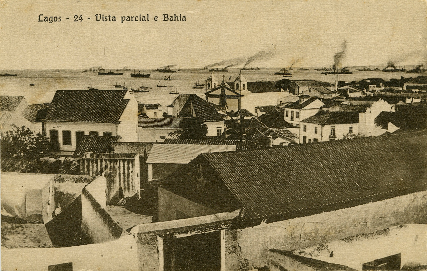 Baía de Lagos e navios, c. 1905 (?), cliché publicado numa revista Ilustração Portuguesa de 1912.