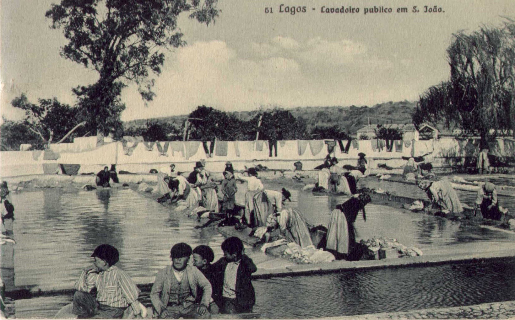 Os tanques eram local de brincadeiras para as crianças que acompanhavam as mães, postal circulado em 1913.