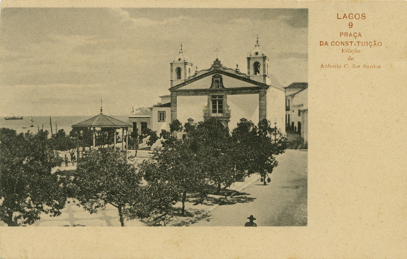 Praça da Constituição em inícios do séc. XX; antiga Praça dos Touros/do Pelourinho/ do Município; posteriormente da República, e finalmente do Infante D. Henrique.