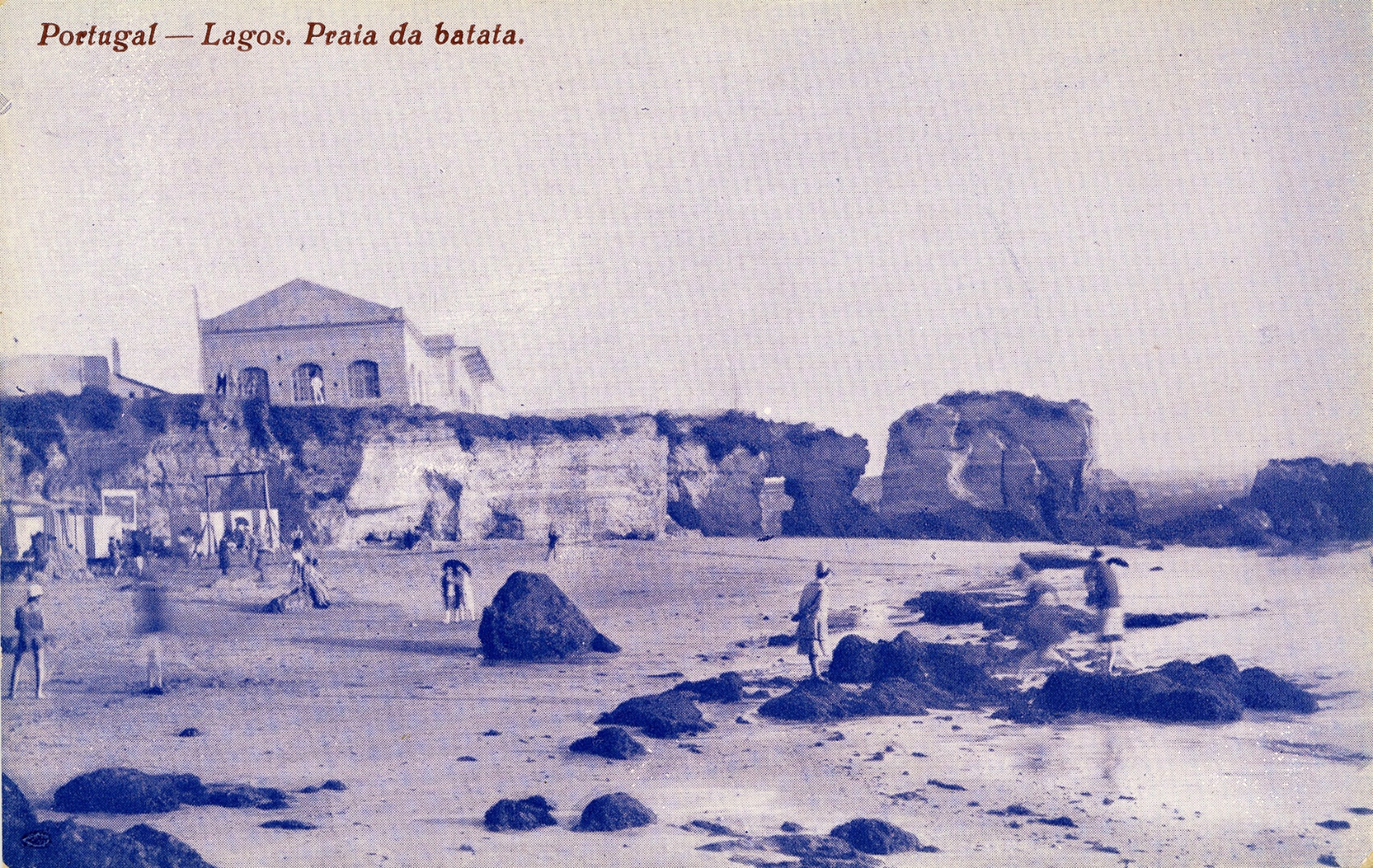 Praia da Batata em 1931/32. No Chão Queimado a fábrica de Conservas de peixe dos irmãos Veiga, mais tarde de J.M. Bexiga e Finalmente de J. A. Pimenta.