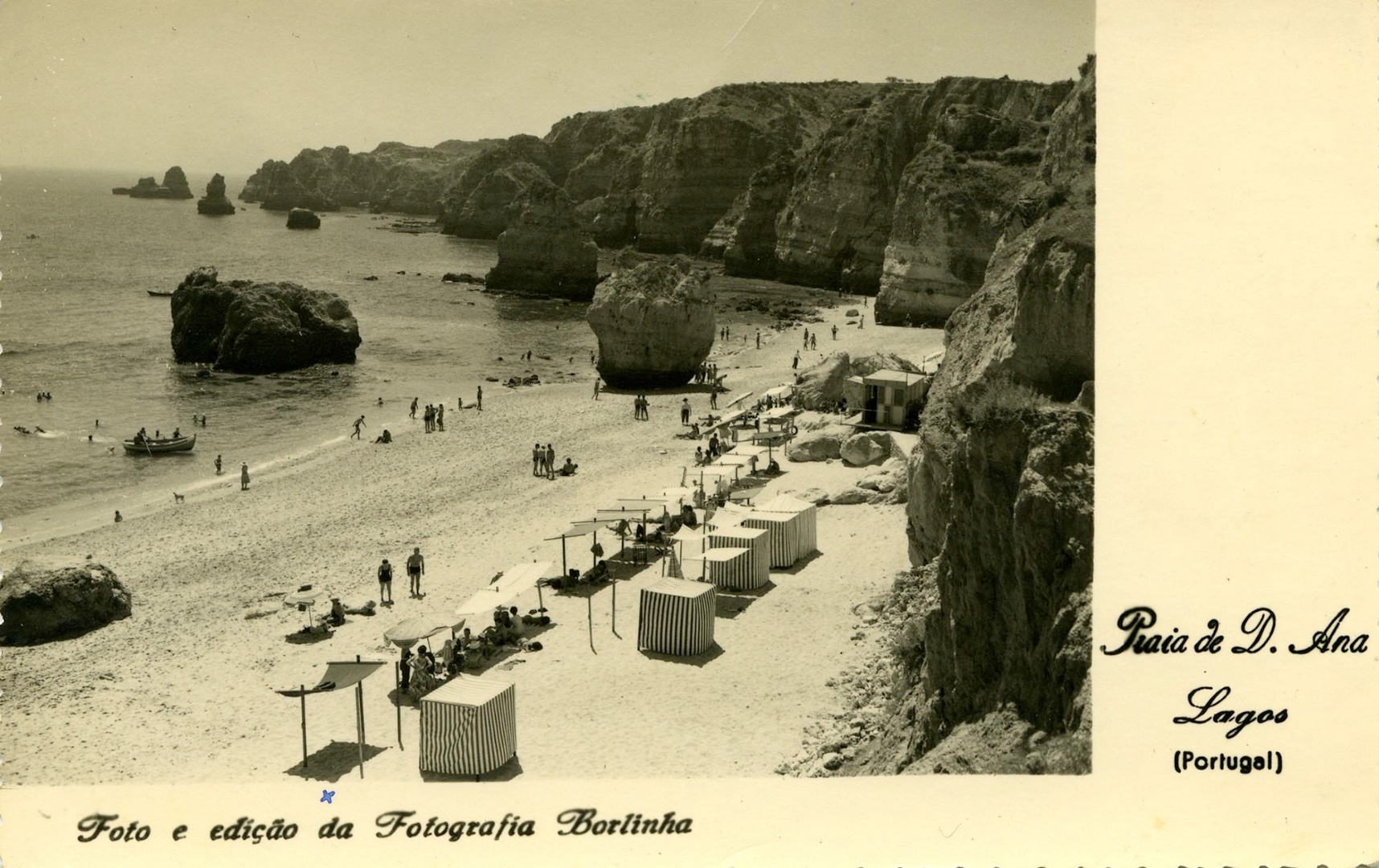 Vista da Praia D. Ana nos anos 60, da autoria de fotografia Borlinha. Colecção de Joaquim Paleta Marreiros.