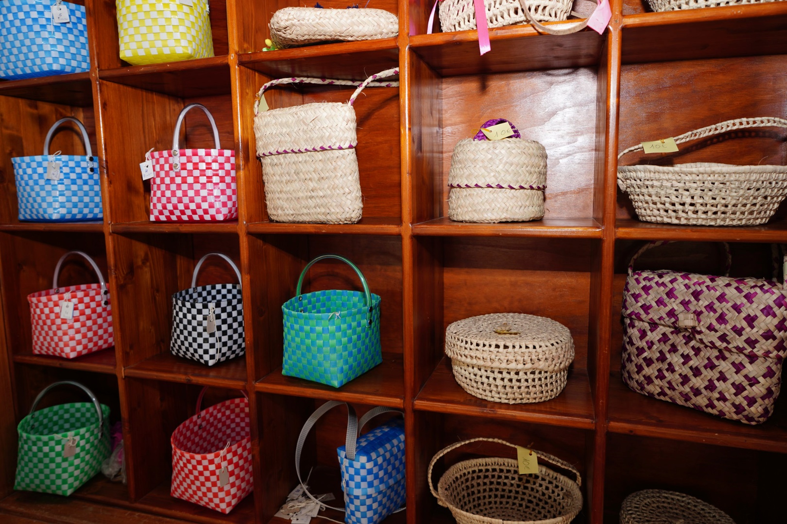 Artesanato tradicional de empreita de palma e adicional empreita de plástico