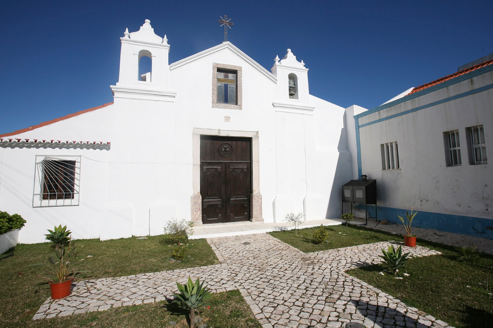 A ermida, ou capela de S. João Batista, de origens medievais, e referida em 1325, foi profundamente remodelada na primeira metade do século XVI. A evidente desarticulação entre a nave e a capela-mor sugere que esta pode ter sido um primitivo morabito. Implanta-se num local historicamente importante, dada a alusão a um primitivo templo de 1174. Com o terramoto de 1755 grande parte do edifício foi arrastado pelas águas. A capela-mor é o único elemento que resta da obra renascentista, apresentando planta centralizada, oitavada, com pináculos que definem os ângulos e a cúpula. A reconstrução em inícios do século XIX foi modesta e essencialmente utilitária, tendo-se alteado as paredes da nave e construído as sacristias, que, no século XX, foram adaptadas a residências particulares, integrando tanques de lavagem e a casa do aqueduto.