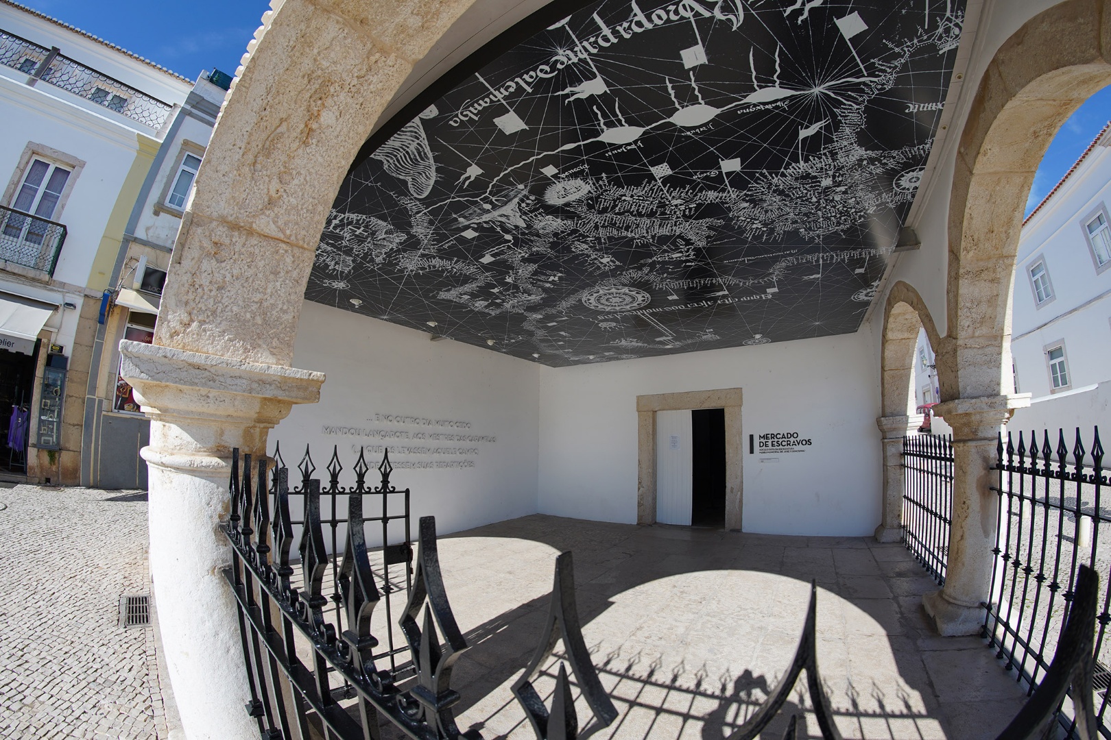 Aspecto do pátio do Núcleo Museológico Rota da Escravatura, inaugurado em 2005, e instalado no antigo edifício da Vedoria, edificado no século XVII, e que desempenhou também as funções de Alfândega, Casa da Guarda e Prisão Militar. Este edifício foi construído perto do rossio onde, em 1444, se fez venda dos primeiros escravos chegados a Lagos, referenciado como Terreiro da Porta da Vila (medieval) nas fontes coevas.