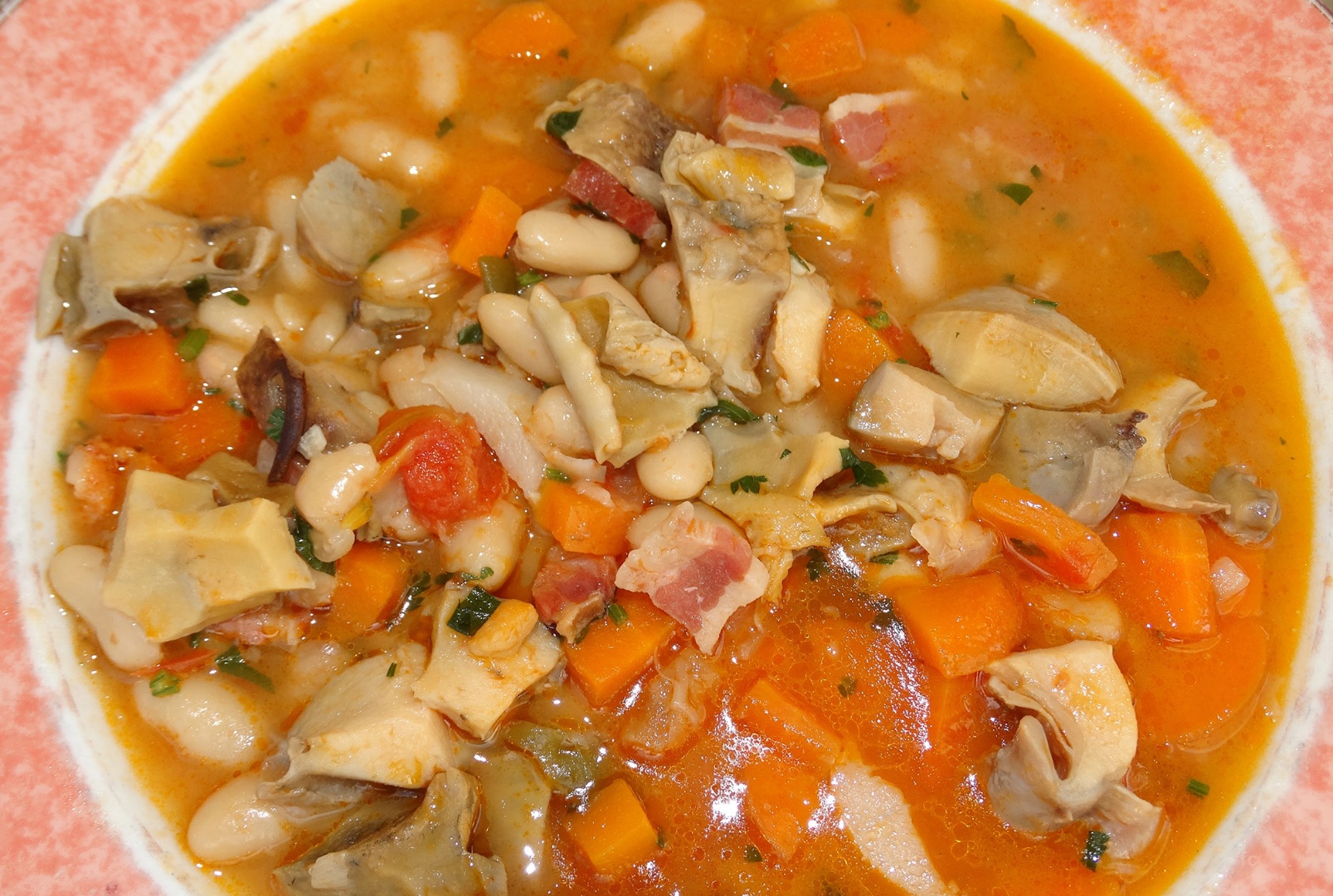Uma receita: Partir cuidadosamente as buzinas e retirar o miolo. Para combater a substância viscosa do molusco, juntar num alguidar o miolo de todas as buzinas e esfregar com sal grosso. Lavar muito bem em água corrente. Repetir esta operação cerca de 4 vezes até as buzinas estarem completamente limpas. Colocar os moluscos numa panela de pressão, se possível com água do mar. Em alternativa usar água com sal. Juntar meia cebola. Cozer durante 30 minutos. Entretanto, cozer o feijão previamente demolhado, numa panela de pressão. Escorrer o feijão e reservar o líquido da cozedura. Num tacho, juntar o azeite, a margarina, o chouriço cortado em meia-lua e o toucinho. Preparar os legumes, cortando-os em pedaços e juntar ao tacho. Juntar o alho finamente picado e reservar. Deixar refogar. Juntar uma malagueta e deixar apurar. Após a cozedura das buzinas, retirar da água e reservar ambos. Coar a água antes de reservar. Lavar as buzinas em água corrente e retirar a glândula. Picar em pedaços e reservar. Juntar a água da cozedura, já coada e com o pimentão previamente misturado, às buzinas. Levar ao lume até ferver. Juntar o feijão cozido e a sua água. Deixar apurar. Servir polvilhado com coentros picados e com arroz branco.