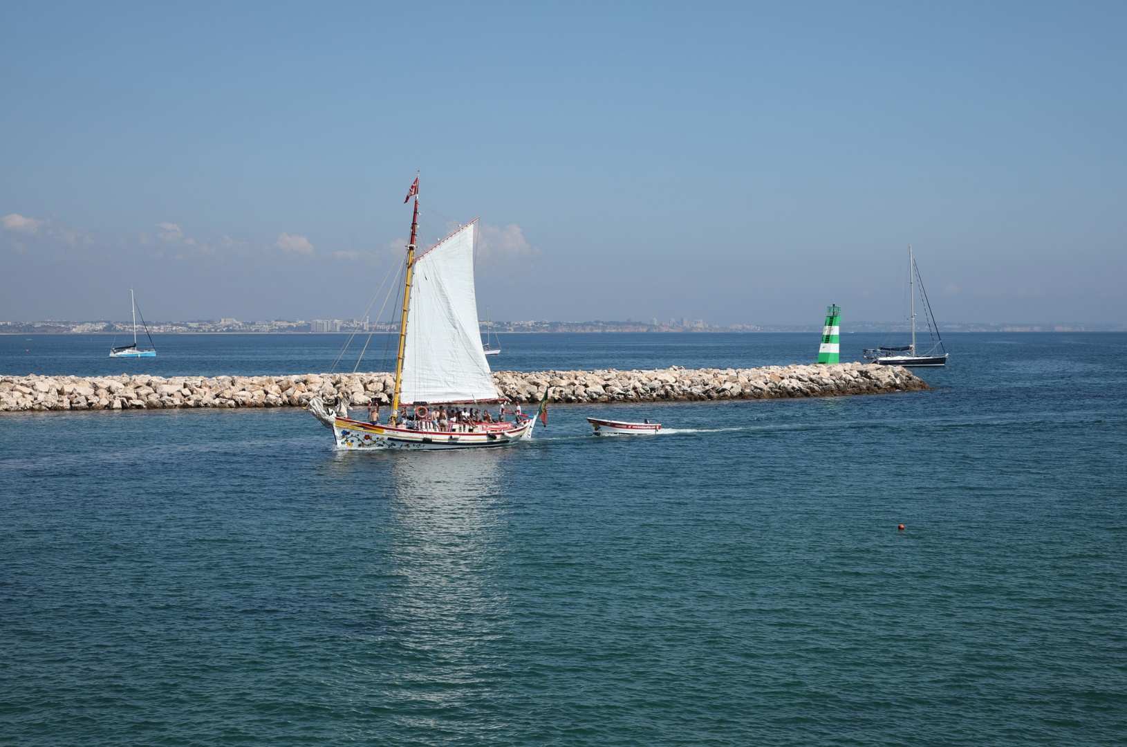 Veleiro tradicional do serviço marítimo-turístico entrando no rio.