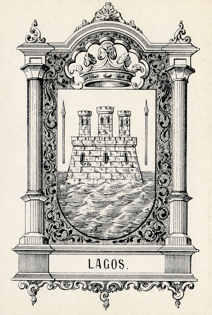 Brasão de Armas do Município de Lagos. Não se trata do mais antigo brasão de Lagos, pois que se sabe ter sido atribuído um brasão em 1504 pelo rei D. Manuel – existindo ainda notícia de um outro mais antigo atribuído à Vila Notável de Lagos pelo Rei D. João I.