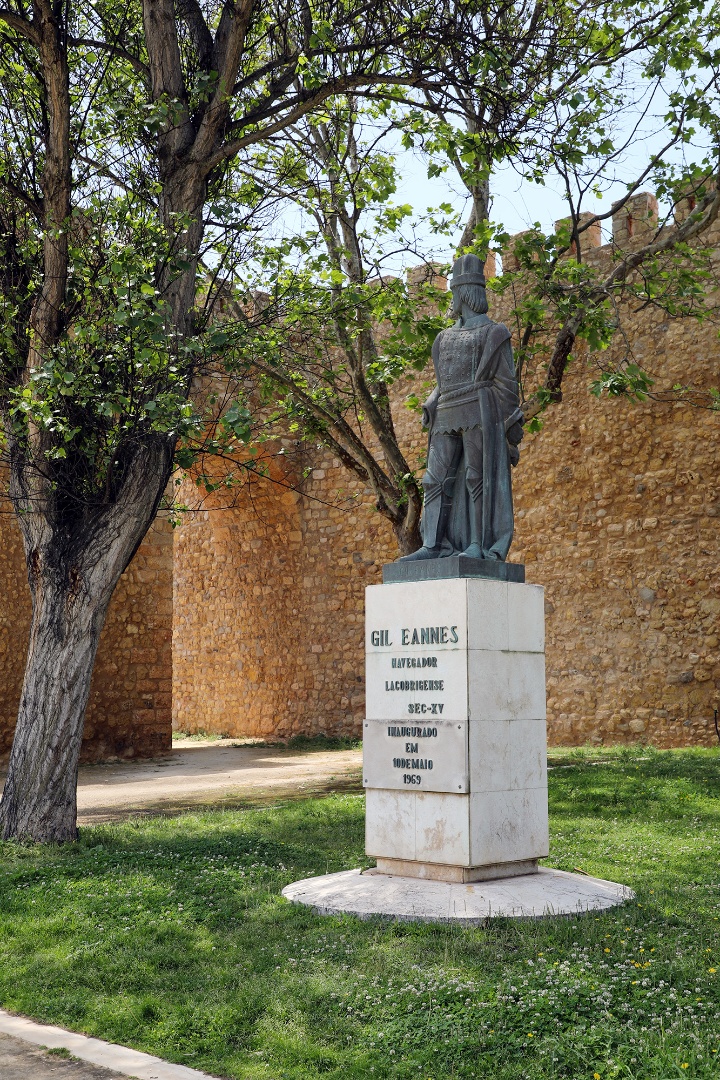 Localizada no Jardim da Constituição, esta estátua do navegador Gil Eanes, inaugurada em 10 de Maio de 1969, da autoria de Canto da Maia, é uma homenagem ao lacobrigense, escudeiro do Infante D. Henrique, que em 1434 dobrou o Cabo Bojador. O navegador está representado junto a um barril, vaso improvisado contendo uma planta, símbolo da descoberta de terra para além do Cabo Bojador.
