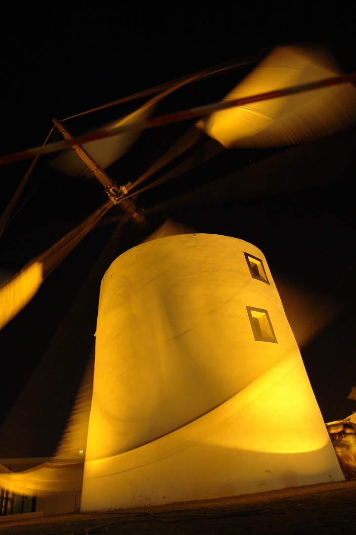 Moinho de Odiáxere, o único moinho funcional existente no concelho de Lagos. Os moinhos de vento terão surgido na Pérsia por volta do século V. O processo de moagem começa com o lançamento do cereal no tegão (recipiente em madeira colocado sobre a pedra de moer) que, posteriormente, sai pela quelha (espécie de caleira que debita o grão para o olho da mó) e cai para a pedra, onde é moído. Após a moagem, a farinha sai por uma ranhura situada sob a mó e é recolhida. Pelo serviço do moleiro é-lhe devida a “maquia do pão” – p. ex. em cada dez quilos fica com um para si. Em Lagos existiram vários moinhos de vento, uns para triturar grão, outros, azeitonas, e até para descascar arroz, neste caso com as mós forradas a cortiça para não esmagar os bagos; assim trabalhava um moinho da família Galvão, situado no Cerro das Mós e, posteriormente, o de João Afonso que laborou com o alvará daquele. Hoje, restam poucos moinhos em funcionamento, mas muitos dos que se encontravam em ruínas e irrecuperáveis para regressar ao seu ofício foram reconvertidos em habitações ou pequenos comércios mantendo os seus traços arquitectónicos presentes na paisagem onde outrora agitaram os seus poderosos braços revestidos de velas e decorados com búzios que cantavam ao vento.
