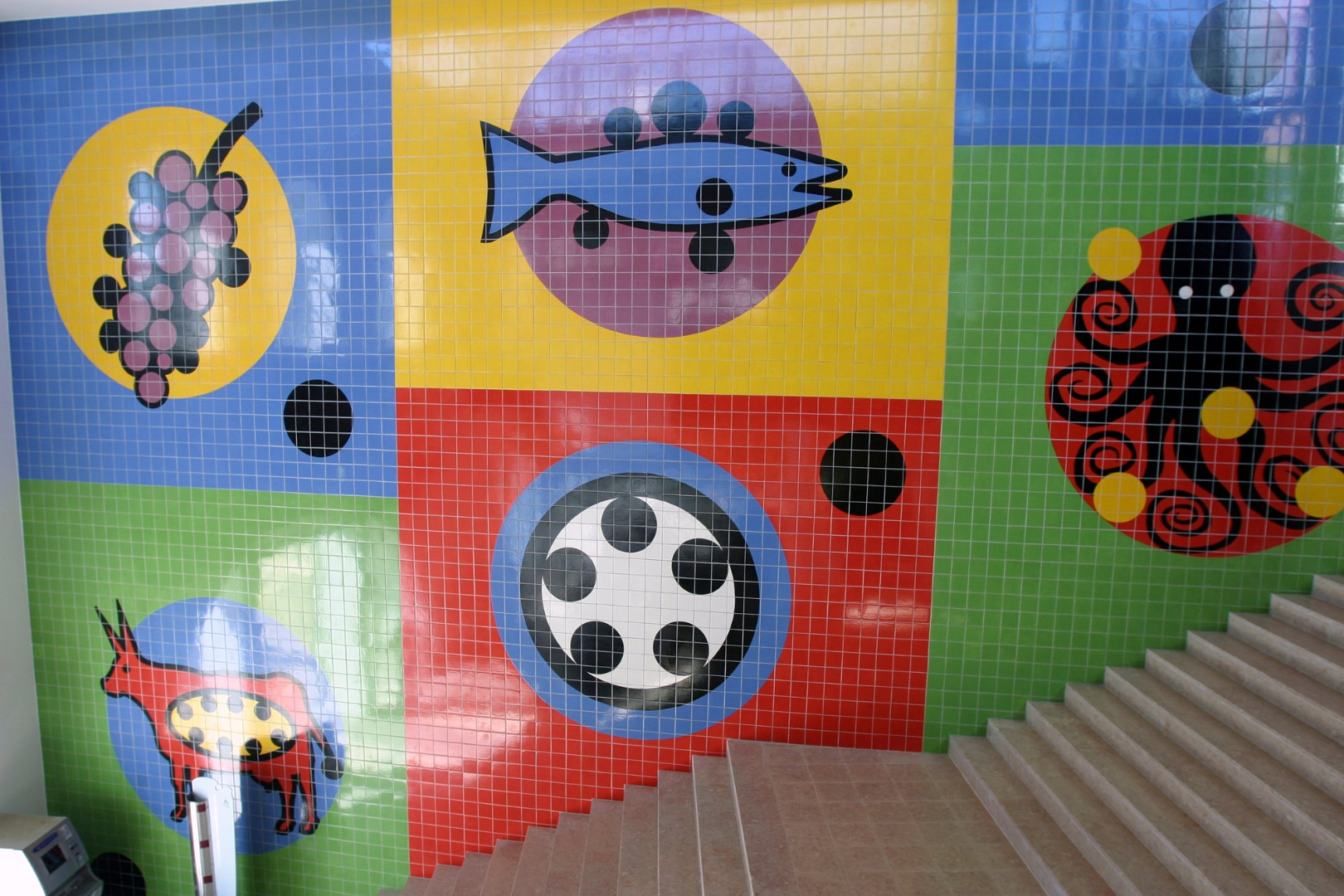 Painel da escadaria do Mercado Municipal da Avenida, da autoria do artista Xana (Alexandre Barata).