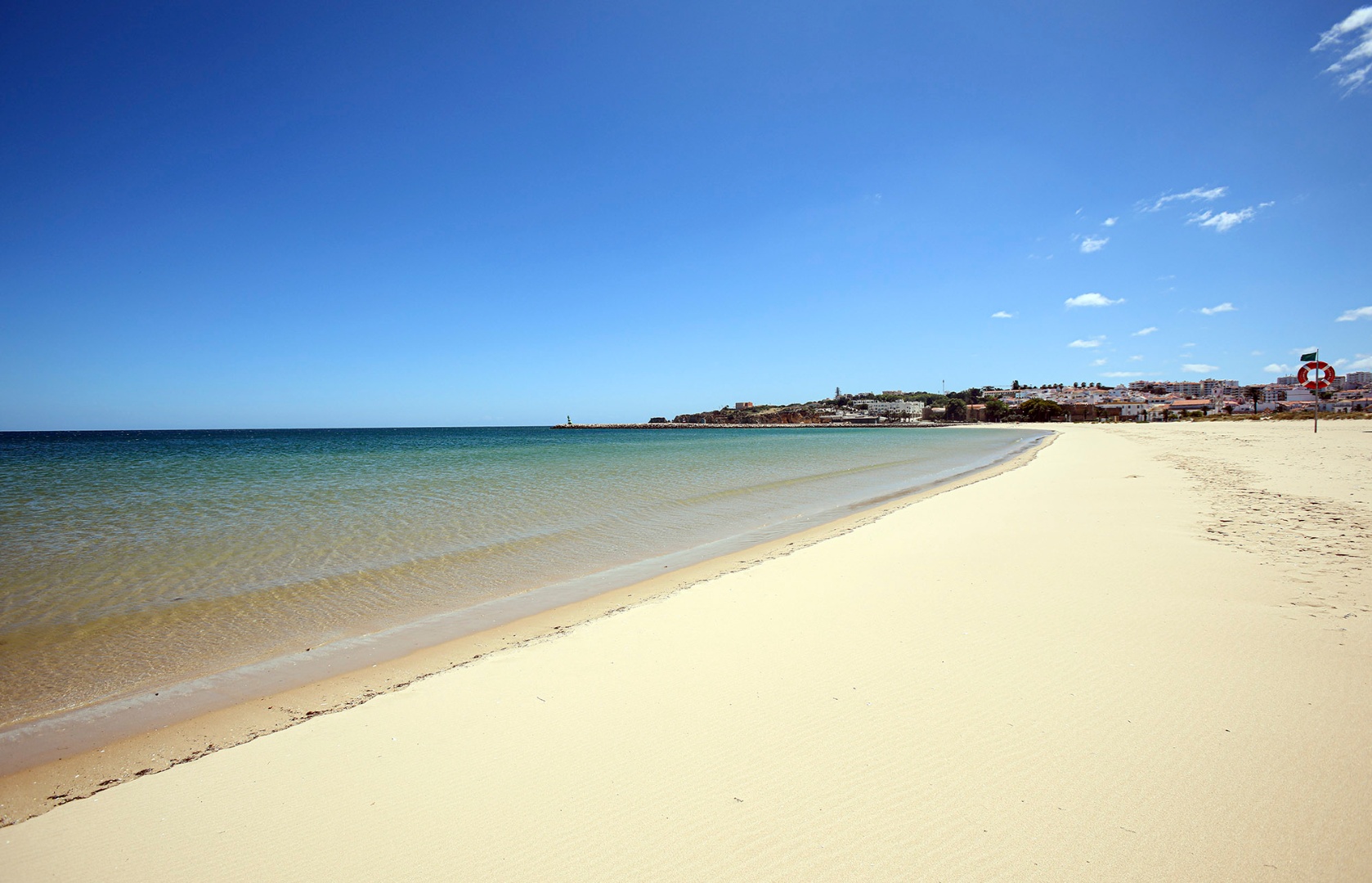 Esta praia, que segue ao longo da curvatura da baía, numa extensão de cerca de 5 quilómetros, até ao Rio de Alvor, está separada do terreno de suave declive que a envolve como um anfiteatro, por um cordão dunar de destacada beleza. A qualidade da fina areia doirada só tem paralelo nas transparentes águas que banham este magnífico trecho da costa. Ali se podem apanhar condelipas (conquilhas no resto do país) na maré baixa enquanto as crianças brincam nas bacias temporárias modeladas pelo mar junto à linha de água. Dali se podem admirar os veleiros grandes e pequenos navegando para lá e para cá, animando a baía com as suas velas brancas recortadas nos azuis do céu e do mar.
