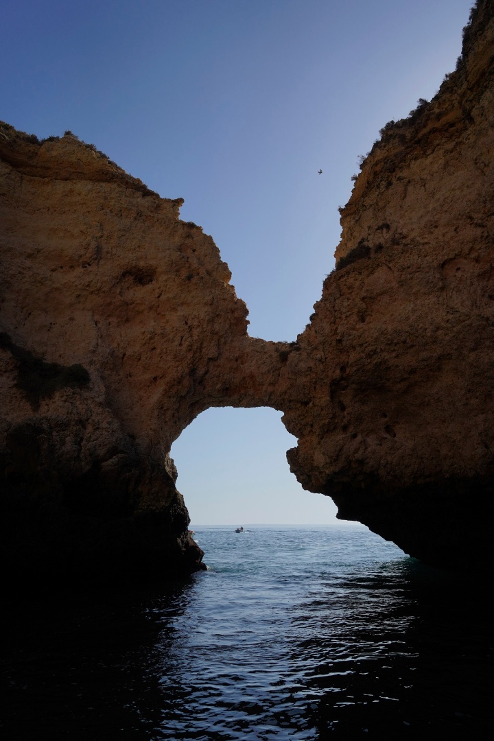 No promontório da Ponta da Piedade se podem admirar, recorrendo a um passeio de barco, pequenas enseadas de areias doiradas e impressionantes furnas e chaminés escavadas pelo mar.
