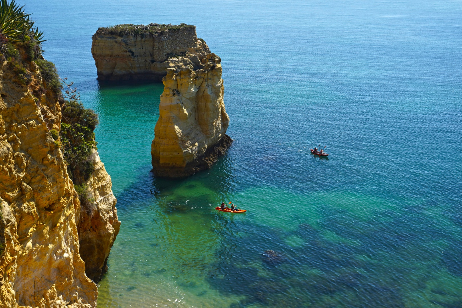 Praias da Costa D’Oiro - Acolhedoras praias de areias douradas e tranquilas águas límpidas, encaixadas no rendilhado rochoso desta porção da costa compreendida entre a Praia da Batata e a Ponta da Piedade e que recebe o seu nome da coloração das rochas. São várias praias interligadas por túneis escavados na rocha, que apresentam pequenas línguas de areia suave, oferecendo águas temperadas, cristalinas, e protecção na sombra dos enormes rochedos de tons amarelos e avermelhados. Aqui, não se sentem os ventos dominantes e pode-se saltitar de rocha em rocha apreciando as criaturas do mundo marinho que a baixa-mar deixa a descoberto. Da Praia Formosa (vulgo, da Batata), passando pelas praias dos Homens, dos Estudantes, da Caldeira, do Pinhão, da Dona Ana, do Camilo, dos Pinheiros, e terminando na Praia Grande, cumpre-se o périplo por estas magníficas enseadas embutidas no rendilhado rochoso da Costa D’Oiro.