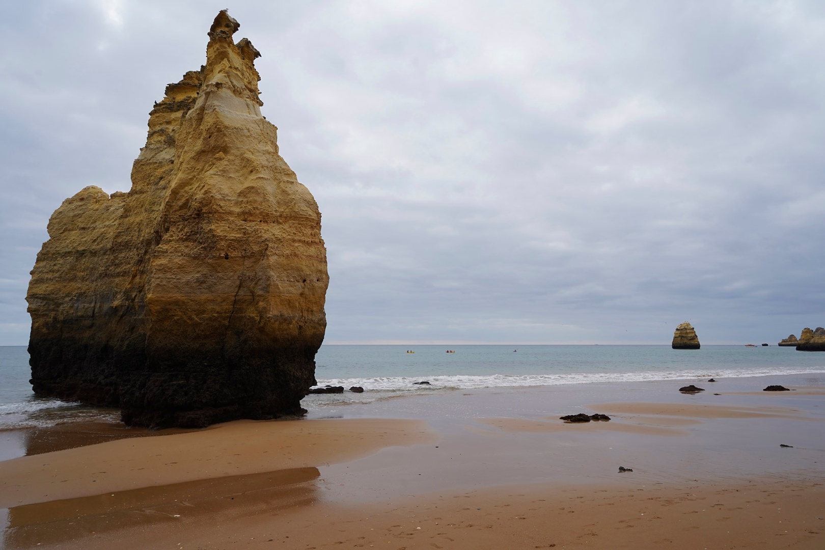 Praias da Costa D’Oiro - Acolhedoras praias de areias douradas e tranquilas águas límpidas, encaixadas no rendilhado rochoso desta porção da costa compreendida entre a Praia da Batata e a Ponta da Piedade e que recebe o seu nome da coloração das rochas. São várias praias interligadas por túneis escavados na rocha, que apresentam pequenas línguas de areia suave, oferecendo águas temperadas, cristalinas, e protecção na sombra dos enormes rochedos de tons amarelos e avermelhados. Aqui, não se sentem os ventos dominantes e pode-se saltitar de rocha em rocha apreciando as criaturas do mundo marinho que a baixa-mar deixa a descoberto. Da Praia Formosa (vulgo, da Batata), passando pelas praias dos Homens, dos Estudantes, da Caldeira, do Pinhão, da Dona Ana, do Camilo, dos Pinheiros, e terminando na Praia Grande, cumpre-se o périplo por estas magníficas enseadas embutidas no rendilhado rochoso da Costa D’Oiro.